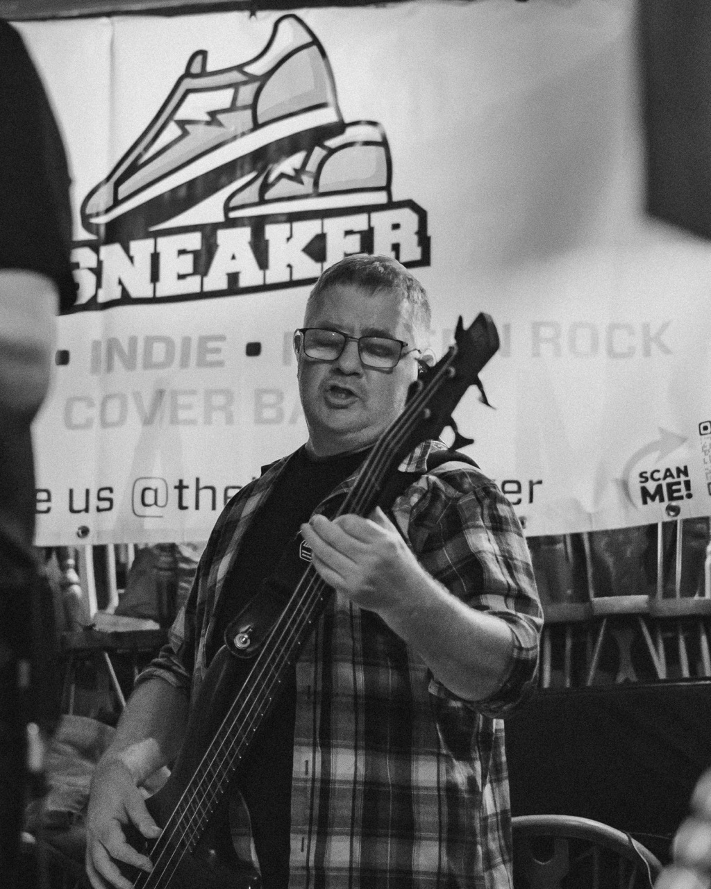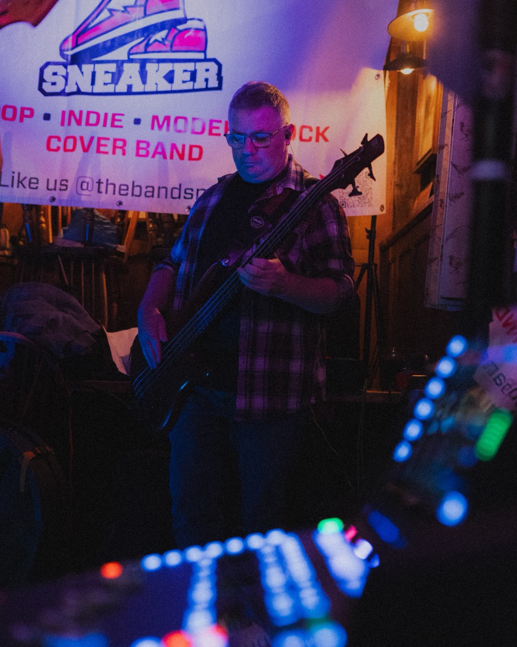 Fronted by Soph on vocals, with Jason on bass, Tony on drums, Mark on rhythm guitar and mandolin, and Rob on lead guitar and backing vocals, Sneaker mix musicianship with pure crowd-pleasing chaos. Behind the scenes, our “fifth Beatle” Josh keeps it all sounding and looking incredible, our irreplaceable sound and lighting whiz.